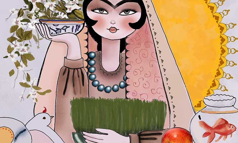 من تمام زمستان بیمار بودم و روحیه ضعیفی داشتم. هنوز هم قدری ناتوانم، ولی بوی بهار مرا سر شوق آورد و با اشتیاق برای نوروز آماده شدم. روی کوزه، شاهی سبز کردم و شیرینی پختم: باسلوق، شیرینی زبان و شیرینی کشمشی و نون نخودچی.