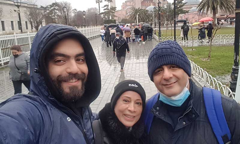 پنجشنبه پنجم اسفند– گفتم: «من باید ایاصوفیه و مسجد آبی را ببینم. نمیشود بیایم استانبول و فقط جواهر مال را بازدید کنم. اگر شما نمیآید، تنهایی میروم.» لازم نشد حرفم را دوباره تکرار کنم. پدر و پسر با اشتیاق همراهم آمدند. باران میآمد، مثل سیل. من یک پانچوی خوب داشتم. نه خیس شدم و نه سردم شد. پانچوی همسرم زپرتی بود، ولی بازهم بهتر از هیچ بود. پسرمان پانچو نداشت. طفلک خیس خورد، ولی صدایش درنیامد و با صبر و بردباری همراهیمان کرد.